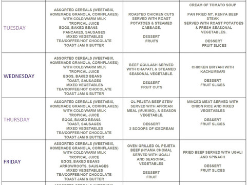 When we read the on line details regarding The Stables it looked just what we were after and subsequently booked 4 nights for US$140 per night (which is exactly the same rate of our subsequent stays at Samburu Simba Lodge and Voi Safari Lodge), and we subsequently received a menu for the various days of the week, which is extensive and mouthwatering, it's attached.