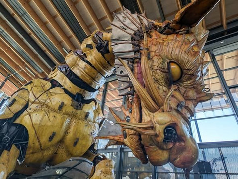 点评:Having been lucky enough to witness La Machine's live street performances in other cities, we came to La Halle de la Machine knowing what these creations are capable of. Just standing before the gigantic machines in stillness, it can still be hard to fully grasp the sheer spectacle they deliver in motion - a blend of mechanical art, theatre and incredible music. It would be good if they showed video footage alongside the large pieces so visitors who haven't seen them perform can appreciate the full magic. A big bravo for the Minotaur — a mere 14 meter tall, the beast carried visitors in an open carriage on his back (forgetting that the Minotaur's favourite food was people). Well done to the team at La Machine!