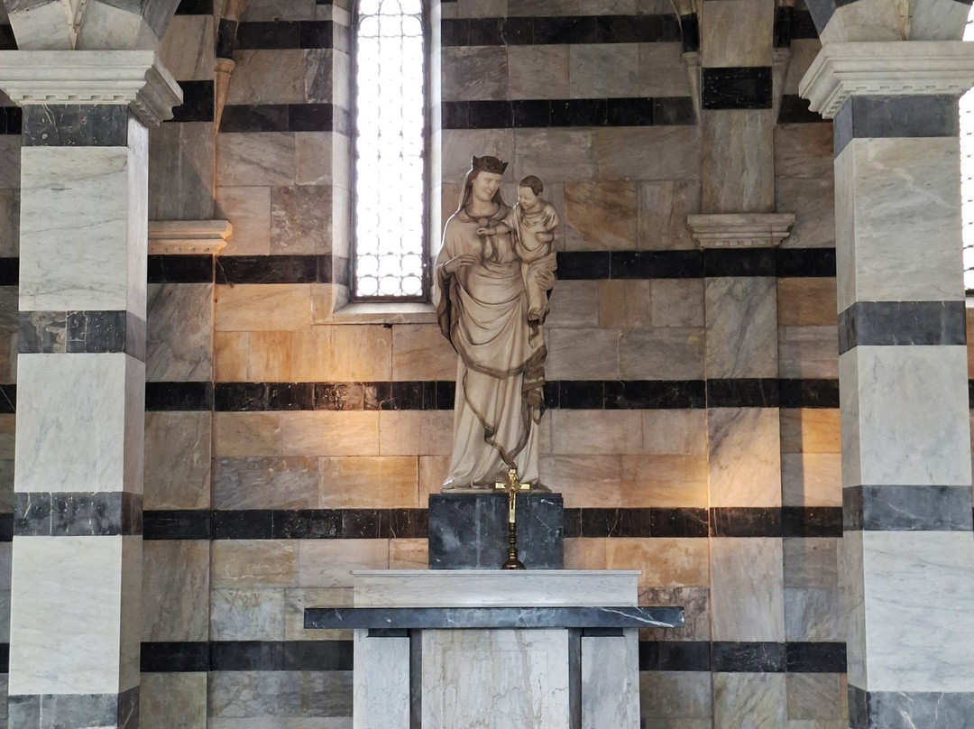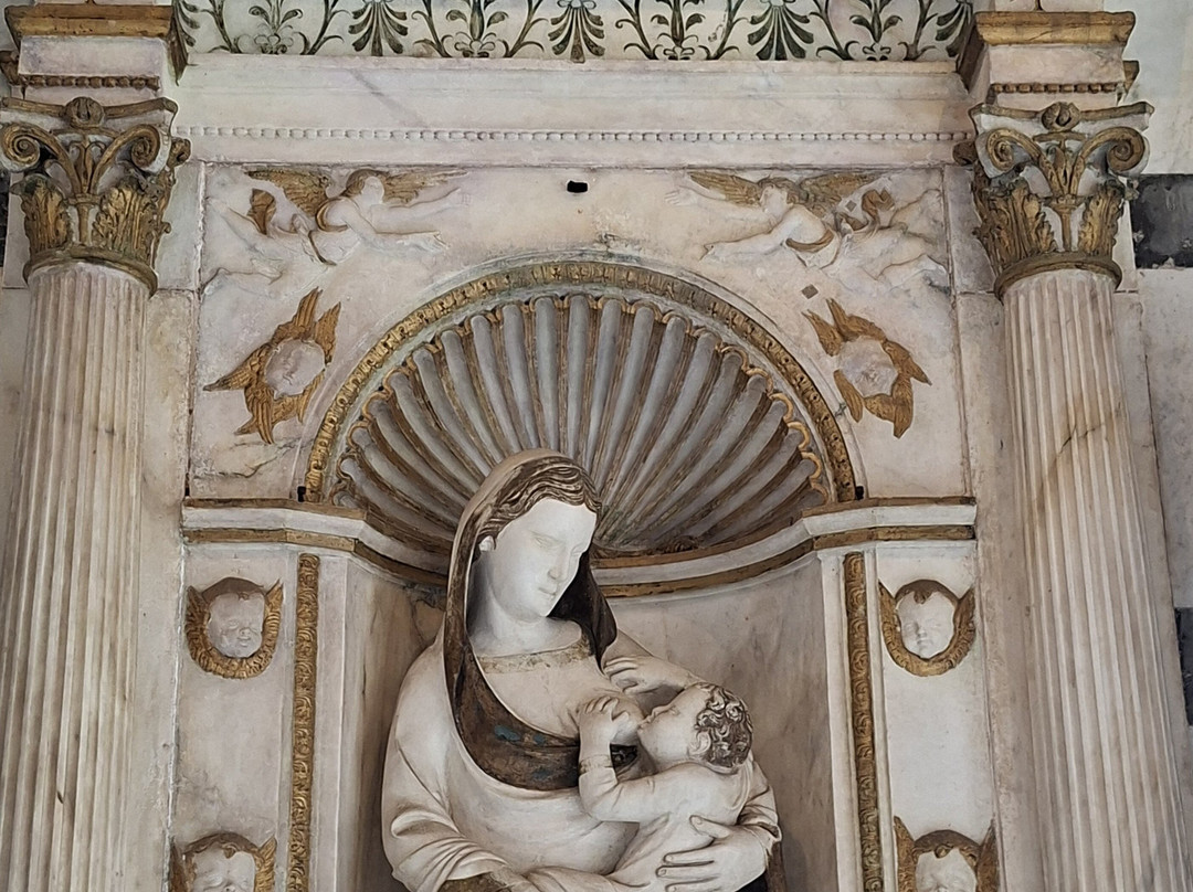教堂内部较为简洁:只有一个房间,中央是圣坛,摆放着三尊雕像:中央是安德烈亚·皮萨诺和尼诺·皮萨诺创作的玫瑰圣母像;两侧分别是圣彼得像和圣约翰像(同样出自两位艺术家之手);最后是皮萨诺家族创作的牛奶圣母像。这座小教堂并非一直开放:如果时间允许,非常值得一去。
