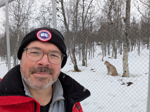 翻译:我们从特罗姆瑟搭乘北极巴士(ArticRoute)下山,沿途欣赏着美丽的风景。宽敞的接待区提供食物、饮料和纪念品,并设有公园入口。周围积雪很厚,更增添了游览的乐趣。一开始,在各自广阔的自然栖息地里,很难看到动物,直到你发现它们的身影!首先映入眼帘的是一头威风凛凛的狼,紧接着是一只雄性猞猁在它的领地围栏边巡逻。我们继续沿着小路前行,从左往右走,看到左边的红鹿在雪地里悠闲地休息,还有麝牛。不久之后,我们发现一头巨大的熊躺在围栏边,悠闲地放松着——它完全沉浸在自己的环境中。太棒了!之后,我们又看到了几头熊在更高的地势上活动,然后是驼鹿,接着是美丽的北极狐。下山的路上,右边突然传来三头狼的齐声嚎叫。真是令人难忘的体验!为了不甘示弱,当我们回到主路时,那只体型较大的猞猁正骄傲地坐在围栏角落里,享受着我们所有人的赞美。我们唯一没找到的动物是狼獾,不过我们和一对看到它的西班牙年轻夫妇聊了聊。