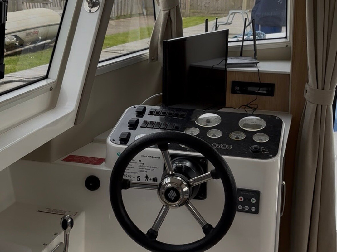 The cruiser itself was delightful and perfectly suited to us as a couple travelling with our dog. In true UK fashion, we encountered a mix of weather, including the tail end of Storm Dave with strong winds, hail, and rain. Thankfully, the sun made an appearance too, giving us the chance to open the canopy roof and relax at the front, soaking up the rays. The changing weather didn't spoil the trip at all.