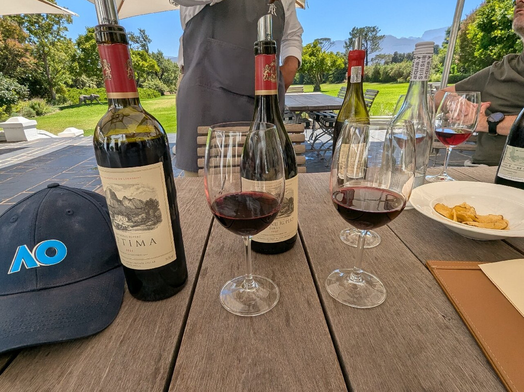 点评:Having done L'omerins and the motor museum the last time I visited the wine lands, this time I dragged my Paarl based family to a vineyard they had not done before. No booking required, a quiet Friday morning and headed for the premium tasting far into the estate. It was an amazing, proper South African wine tasting, the toe that made me fall for this place years ago. Beautiful surroundings, exquisite manor house, knowledgeable, friendly and outgoing hosts and sommeliers, not sticking to the prescribed wine choices from the menu " if you liked that, perhaps I have something special you would like" ..... 2 and a half hours later, with port, spirits and various different wines sampled, you leave with bags laden, a rosy glow and a massive smile on your face. Anthonij Rupert may have incredible wealth, but he wants to share the family wines with everyone. They have multiple wine makers for their multiple brands, all at very reasonable value. Pretty much every grape you could think of except get the malbec planted! After that, the other wine tasting experiences were a bit underwhelming, but it's all relative isn't it. Roll on my next south African wine tour