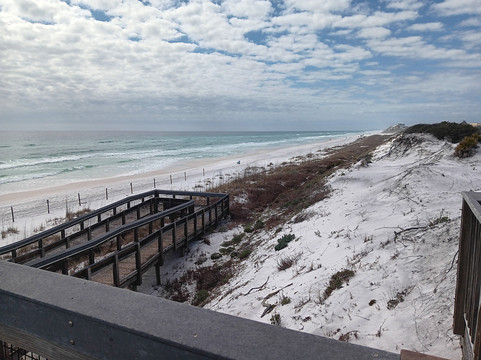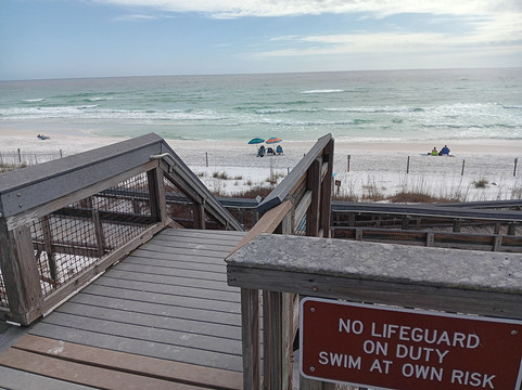 沙滩景色优美,海水碧绿,沙滩洁白细腻。我们在这里住了五天,这里干净又安静,每次最多也就看到二十来个人,不过人流量可能会随季节变化。海滩入口是一条大约100码长的无障碍木栈道。如果您打算使用轮椅或电动代步车,可以比较轻松地到达海滩,但返回时需要费一番功夫,因为要爬上那条又长又陡的坡道。