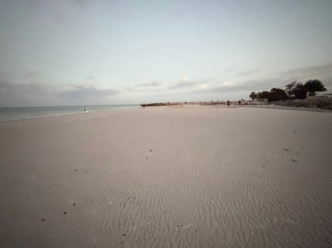 我没有看到任何公共厕所,也没有加油站之类的设施。由于贝壳太多,沙子有点粗糙,光脚踩上去有点硌脚。