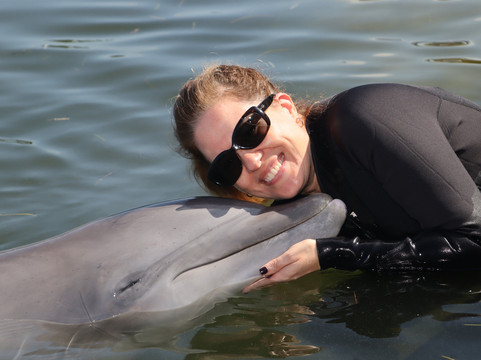翻译:这真是太棒了!我们参加了海豚互动体验,可以下水和海豚一起玩耍。当时是三月初,我穿了潜水服(总是觉得冷),我老公没穿。他也没什么事。幸好我穿了。我建议不要穿救生衣——我穿了,因为我游泳技术不太好,而且听起来好像要游很远。结果并不是这样。救生衣让我很难保持趴着的姿势。不穿救生衣会更好。你只会漂浮几秒钟,然后美丽的海豚就会游过来,带你兜风。我们和海豚玩得很开心,听驯兽员讲解海豚的故事也很有意思。鹦鹉区也很棒!这是一次很棒的体验——唯一的缺点就是价格。我们为15分钟的互动体验支付了500美元,再加上照片的费用,感觉有点贵。如果照片包含在体验费用里就好了。