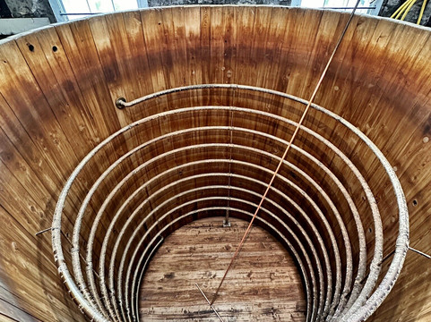 导游知识渊博,详细讲解了酒厂的历史和当前的酿造工艺。一个特别之处在于,酒厂利用重力在酒桶间滚动轨道上移动,只需轻轻一推即可启动。