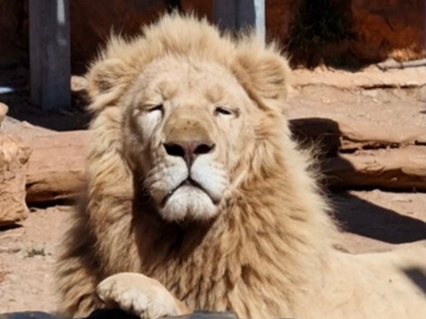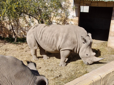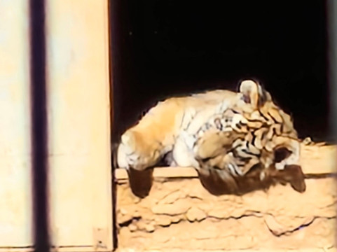 我们在老虎馆里看到了一只幼虎。还有一大群狮子、两头犀牛和一头大象。