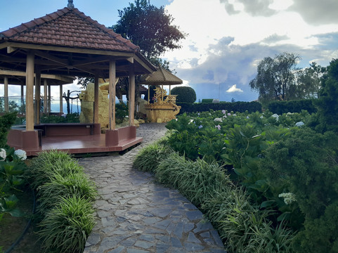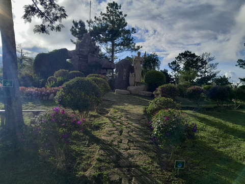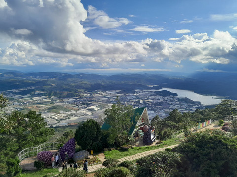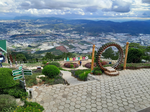 虽然步道靠近上山的公路,但我丝毫感觉不到是在沿着公路行走。山顶有一些有趣的雕塑和建筑,还有铺好的步道、商店和酒吧可以探索。我去的那天天气晴朗,所以欣赏到了壮丽的景色,甚至可以看到大叻市区。