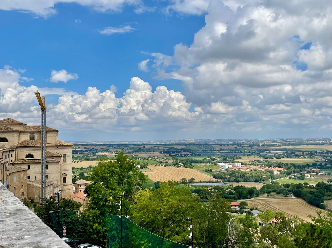 最佳观景点是共和国广场 (Piazza Della Repubblica),这是一个马蹄形的主广场。广场几乎悬在山坡上,有一个长长的阳台状区域,我们在那里流连忘返,尽情欣赏马尔凯 (Marche) 乡村的壮丽景色。视野甚至延伸到了西比尔山脉 (Sibylline Mountains) 和科内罗山 (Mt Conero)。